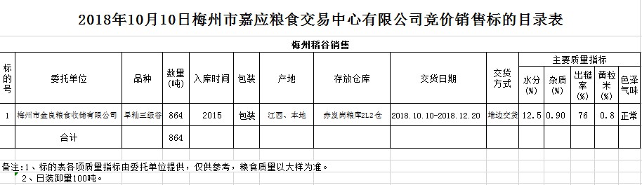 交易時間和地點:2018年10月10日(星期三)上午10時。廣東省梅州市彬芳大道南161號梅州市糧食交易中心3樓。