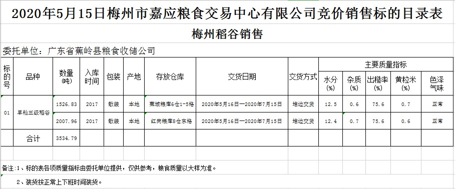交易時間和地點:2020年5月15日(星期五)上午10時。廣東省梅州市彬芳大道南161號梅州市糧食交易中心3樓。