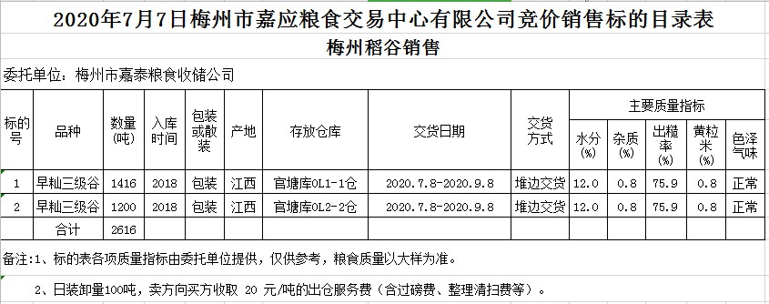 交易時間和地點:2020年7月7日(星期二)上午10時。廣東省梅州市彬芳大道南161號梅州市糧食交易中心3樓。