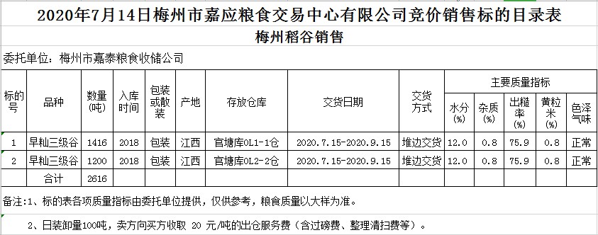 交易時間和地點:2020年7月14日(星期二)上午10時。廣東省梅州市彬芳大道南161號梅州市糧食交易中心3樓。