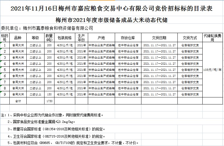梅州市2021年度市級儲備成品糧油動態(tài)代儲及包干輪換費(fèi)用公開招投標(biāo)公告