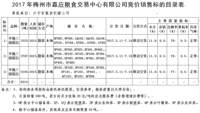 交易地點(diǎn):廣東省梅州市梅江區(qū)彬芳大道南161號(hào)梅州市糧食交易中心3樓
