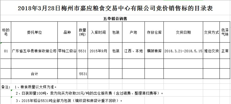 交易時(shí)間和地點(diǎn):2018年3月28日(星期三)下午15時(shí)30分。廣東省梅州市彬芳大道南161號梅州市糧食交易中心3樓。